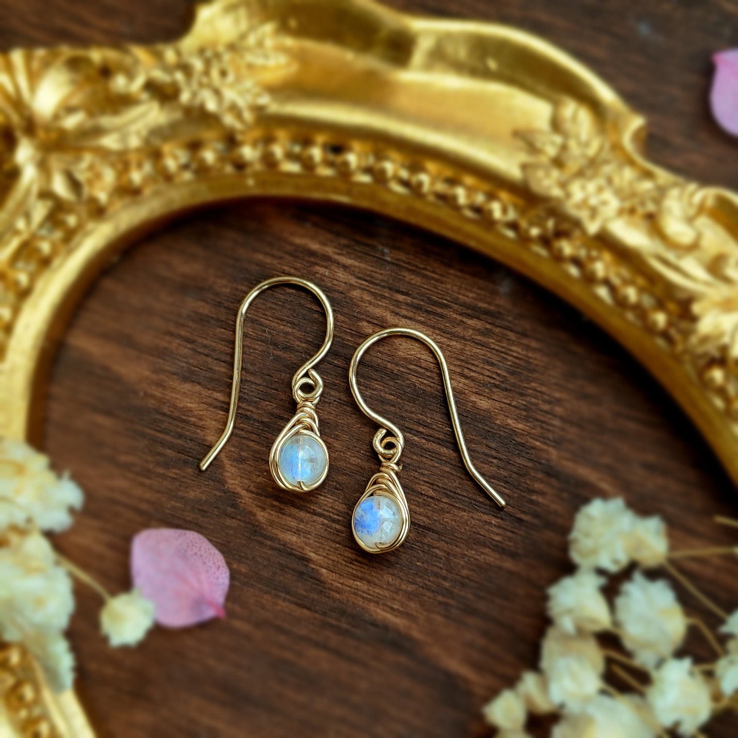 Our classic small dangle earrings. With 4mm gemstone beads delicately wrapped in...