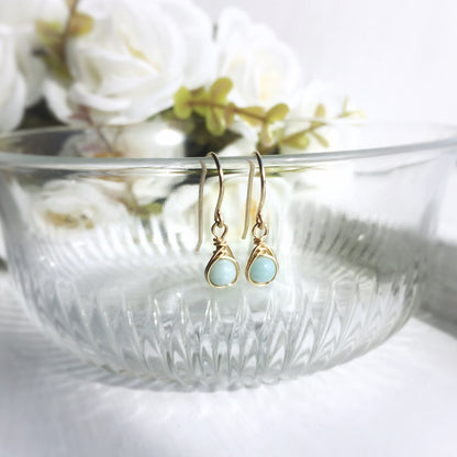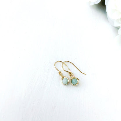 💚 Amazonite Dangle Earrings with 4mm Genuine Amazonite beads and 14K Gold-filled or Sterling Silver wire.