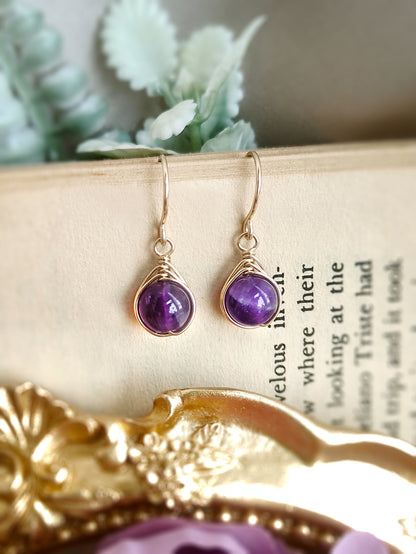 💜 Small dainty Amethyst earrings with 6mm natural Amethyst beads