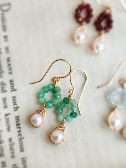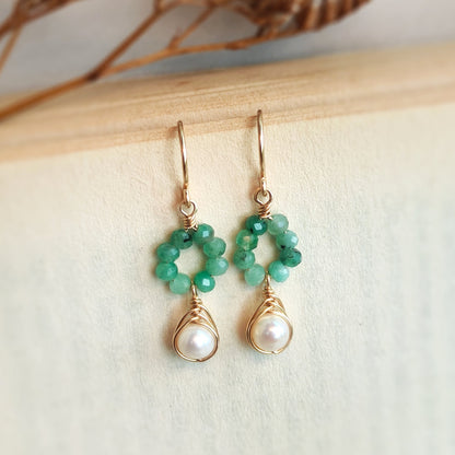• Handmade with natural green emerald gemstones & freshwater pearls. Choices of 14K Gold filled & Sterling Silver