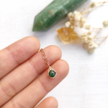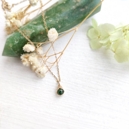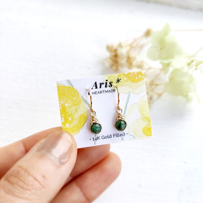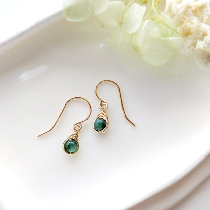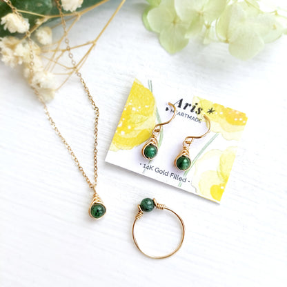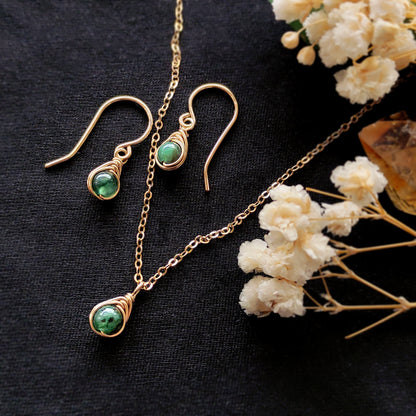 💚 Tiny Emerald Dangle Earrings & Necklace Set with 4mm genuine emerald beads. Choices of 14K gold-filled, rose gold-filled & 925 Sterling Silver.