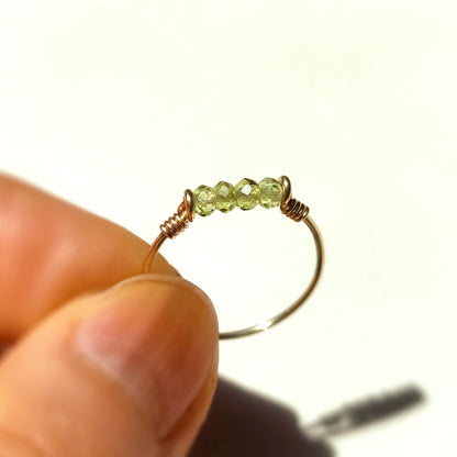 Petite and dainty ring with genuine Peridot crystal beads ✨Handmade 14K Gold Filled, Rose Gold Filled, Sterling Silver, Dainty Gemstone Ring