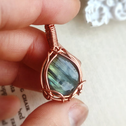 Labradorite Wire Wrapped Pendant in Solid Copper (B)