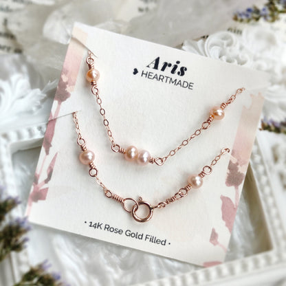 Featuring pink freshwater pearls and 14K Rose Gold Filled chain