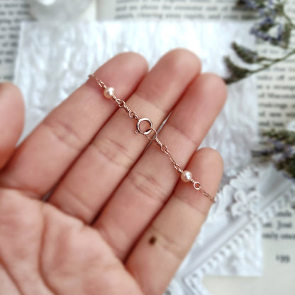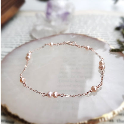 A dainty and elegant bracelet made with soft pink freshwater pearls, strung on a high-quality 14K rose gold-filled chain. Timeless and romantic, it’s a beautiful piece for bridal occasions, thoughtful gifts, or a little treat for yourself.