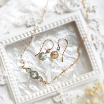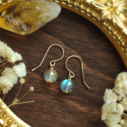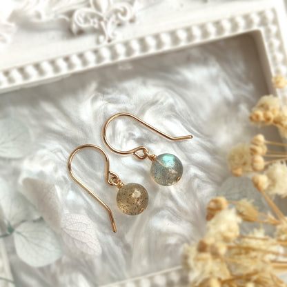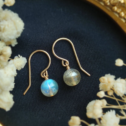 Tiny Labradorite Drop Earrings with 14K Gold Filled, Rose Gold Filled or Sterling Silver