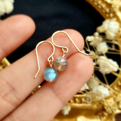 • Cute dangle earrings with genuine Labradorite beads. From certain angles, you can see the beautiful blue and yellow light from the stone. Very dainty and precious earrings for everyday wear.