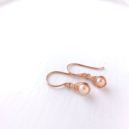 • Handmade with 4mm round pink Freshwater Pearls and 14K gold-filled or Sterling Silver wire.