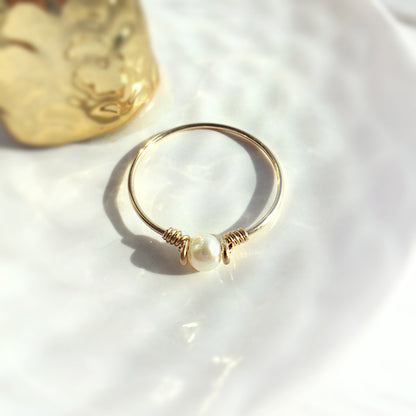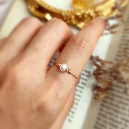 This delicate handmade ring features a single freshwater pearl — soft, subtle, and timeless.