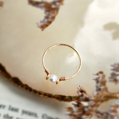 This dainty pearl ring features a single 4mm natural freshwater pearl: a timeless symbol of purity and calm, hand-threaded on a slim 0.8mm band.