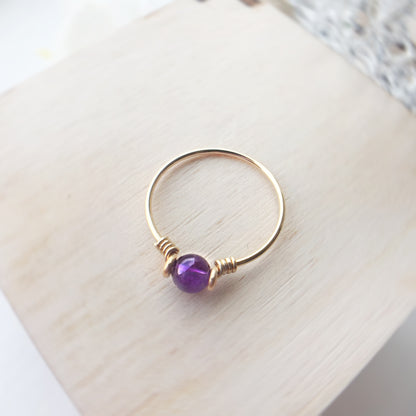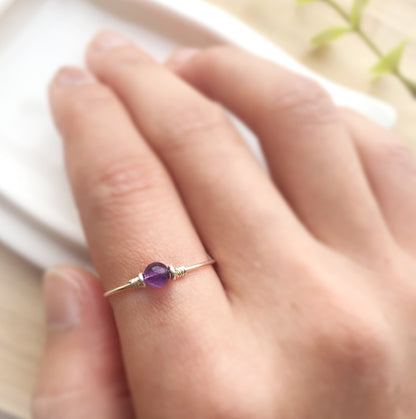 ✨ Tiny Amethyst Ring with 14K Gold Filled - Sterling Silver, February Birthstone Ring ✨