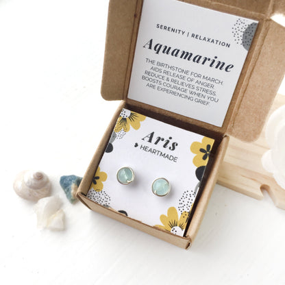 Aquamarine Stud Earrings, March Birthstone Earrings