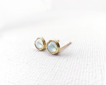💙 Tiny Aquamarine Stud Earrings with 4mm natural Aquamarine beads and choice of 14K gold-filled/ 925 Sterling Silver wire.