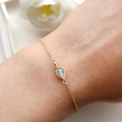 Dainty Aquamarine Bracelet in 14K Gold Filled, March Birthstone Gift