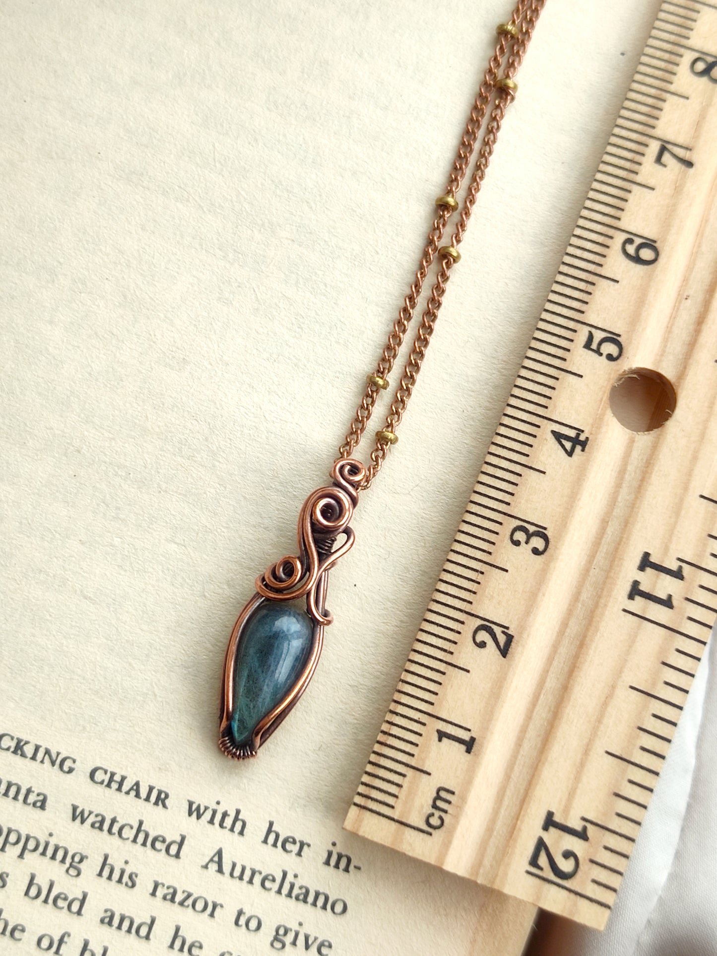 Mini Labradorite Teardrop Pendant Necklace in Copper