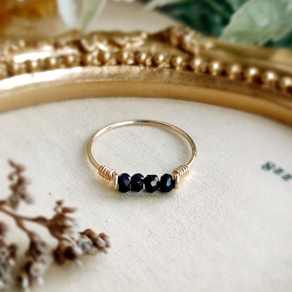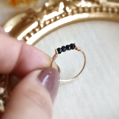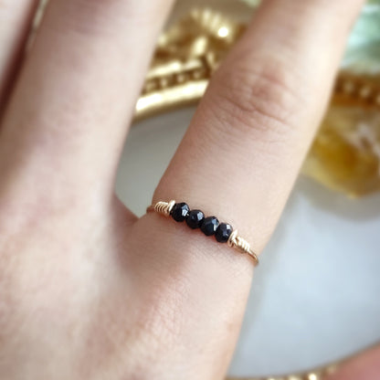 A sleek, minimal ring featuring a natural raw black tourmaline bar. Known as a powerful protective stone, black tourmaline is believed to cleanse and purify heavy energy, offering grounding support and shielding for sensitive souls and empaths.