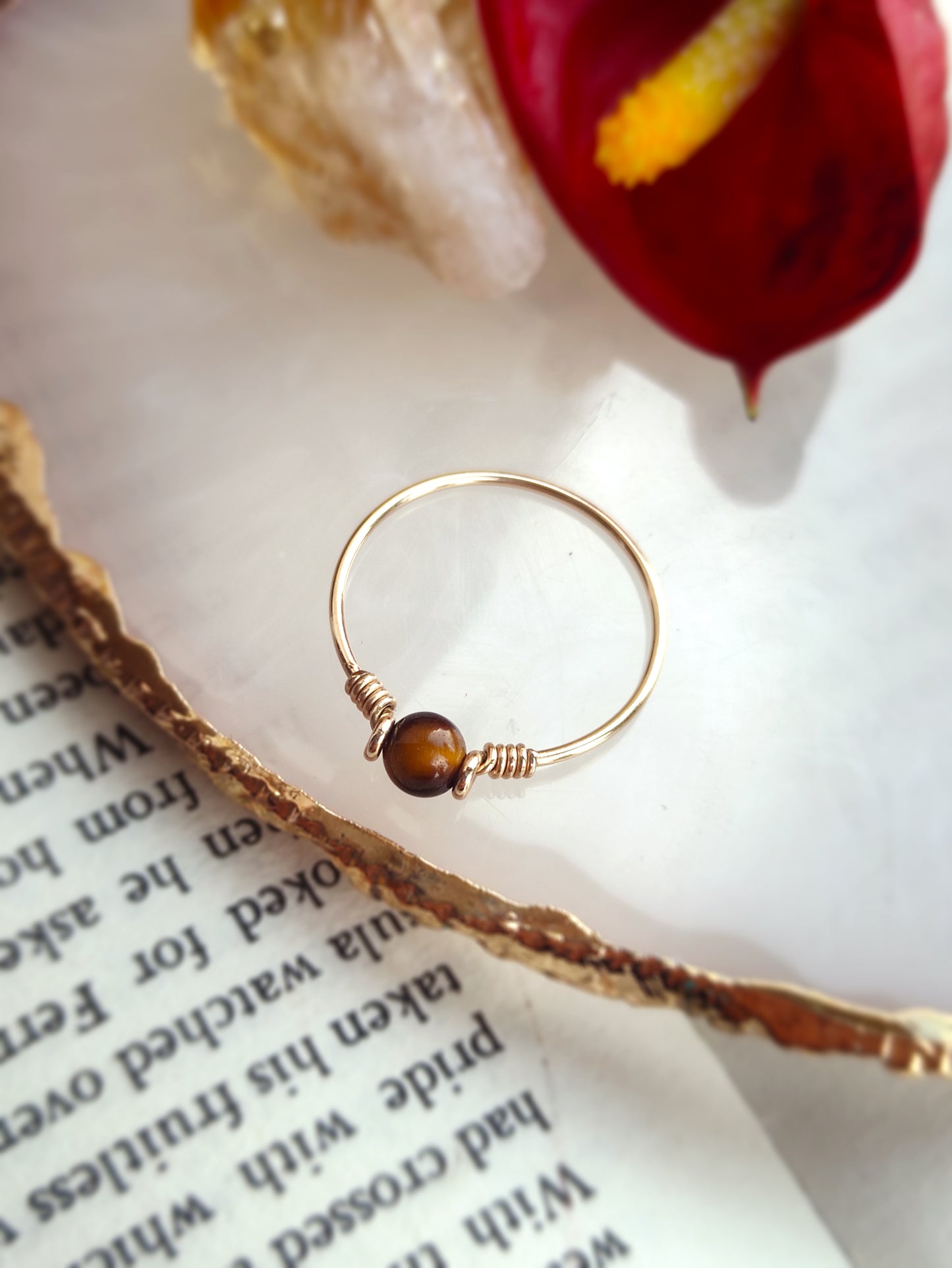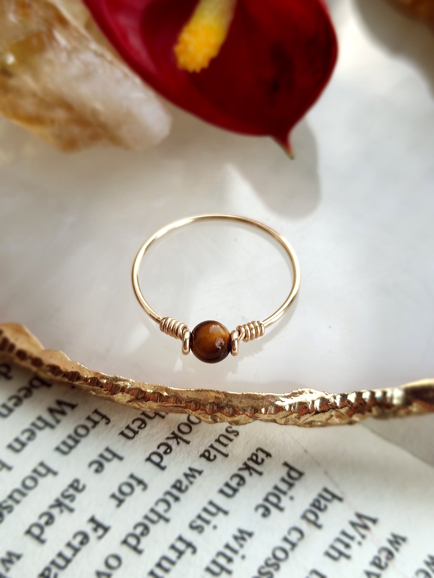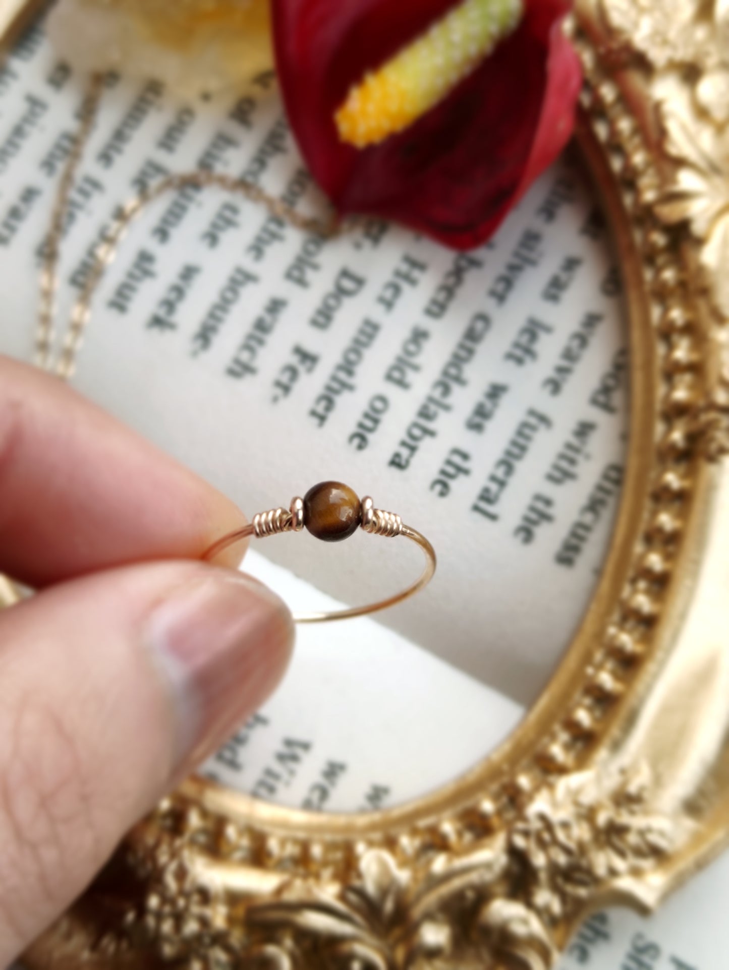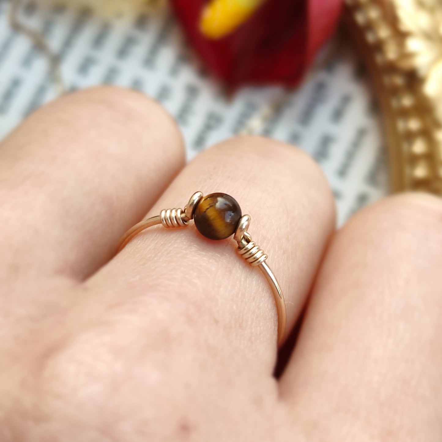 • Handmade in your ring size with a natural Tiger Eye bead. It's very cute and dainty, perfect as a stacking ring, pinky ring, and also makes a perfect gift.
