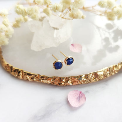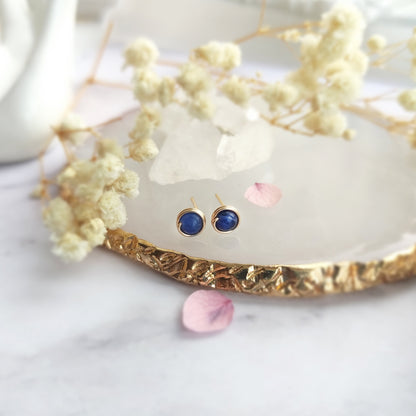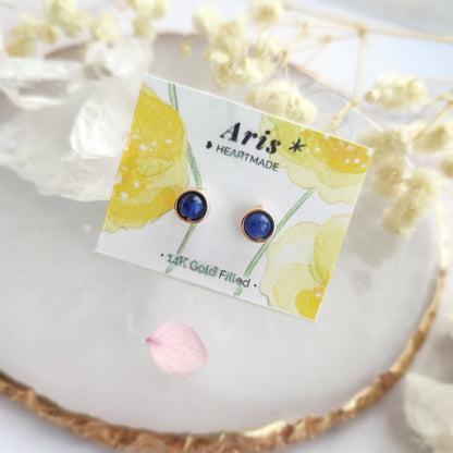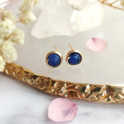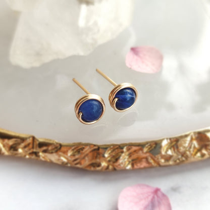 💙 Sodalite Stud Earrings 14K Gold Filled, Rose Gold Filled, Sterling Silver Wire Wrapped Tiny Gemstone Earrings 💙