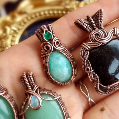 Amazonite and Green Onyx Wire Wrapped Pendant in Copper FAQs