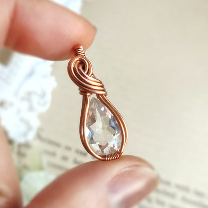 • This lovely pendant is handmade with a natural clear quartz faceted gemstone. The metal part is solid copper.
