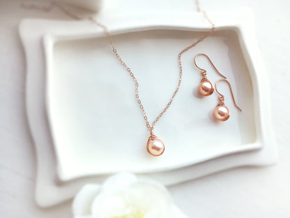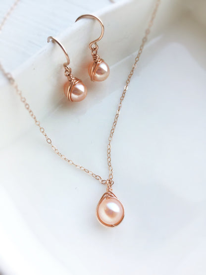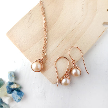 Pink Pearl Earrings and Necklace Set, Dainty Pearl Jewelry Set