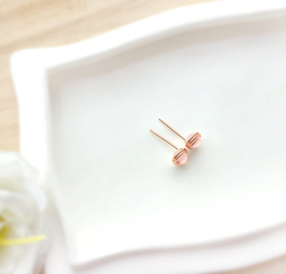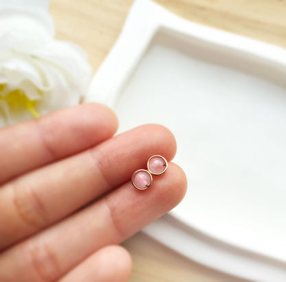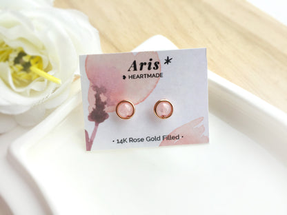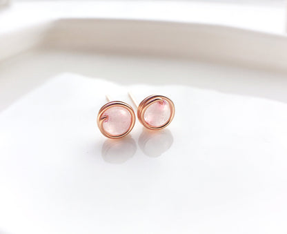 💕 Rose Quartz Stud Earrings,14K Gold Filled, Rose Gold Filled, Sterling Silver Tiny Wire Wrapped Stud Earrings
