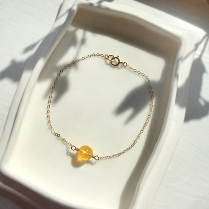 ✨ Delicate Single Amber Ball Bracelet with 14K Gold Filled, Rose Gold Filled or Sterling Silver.