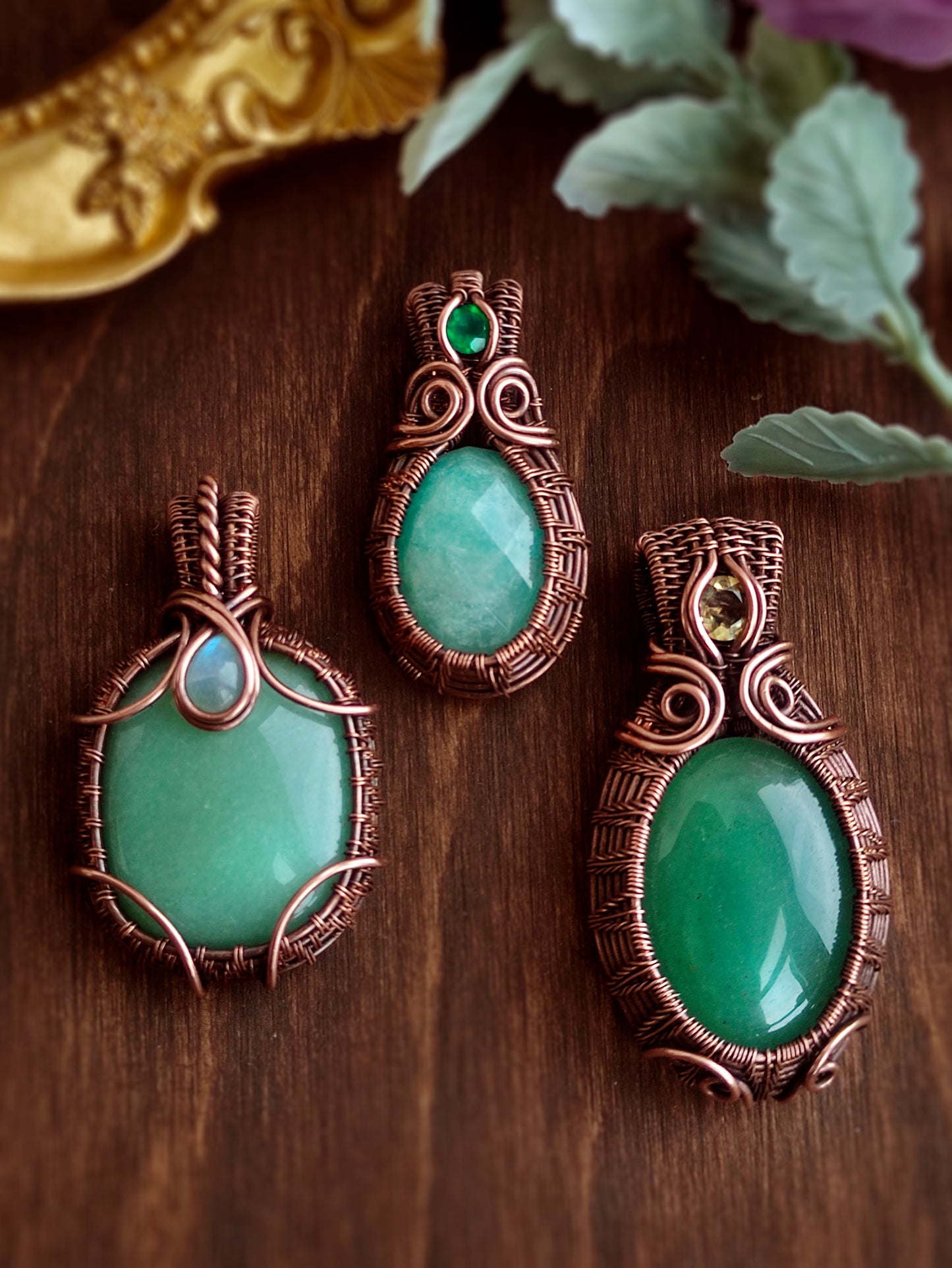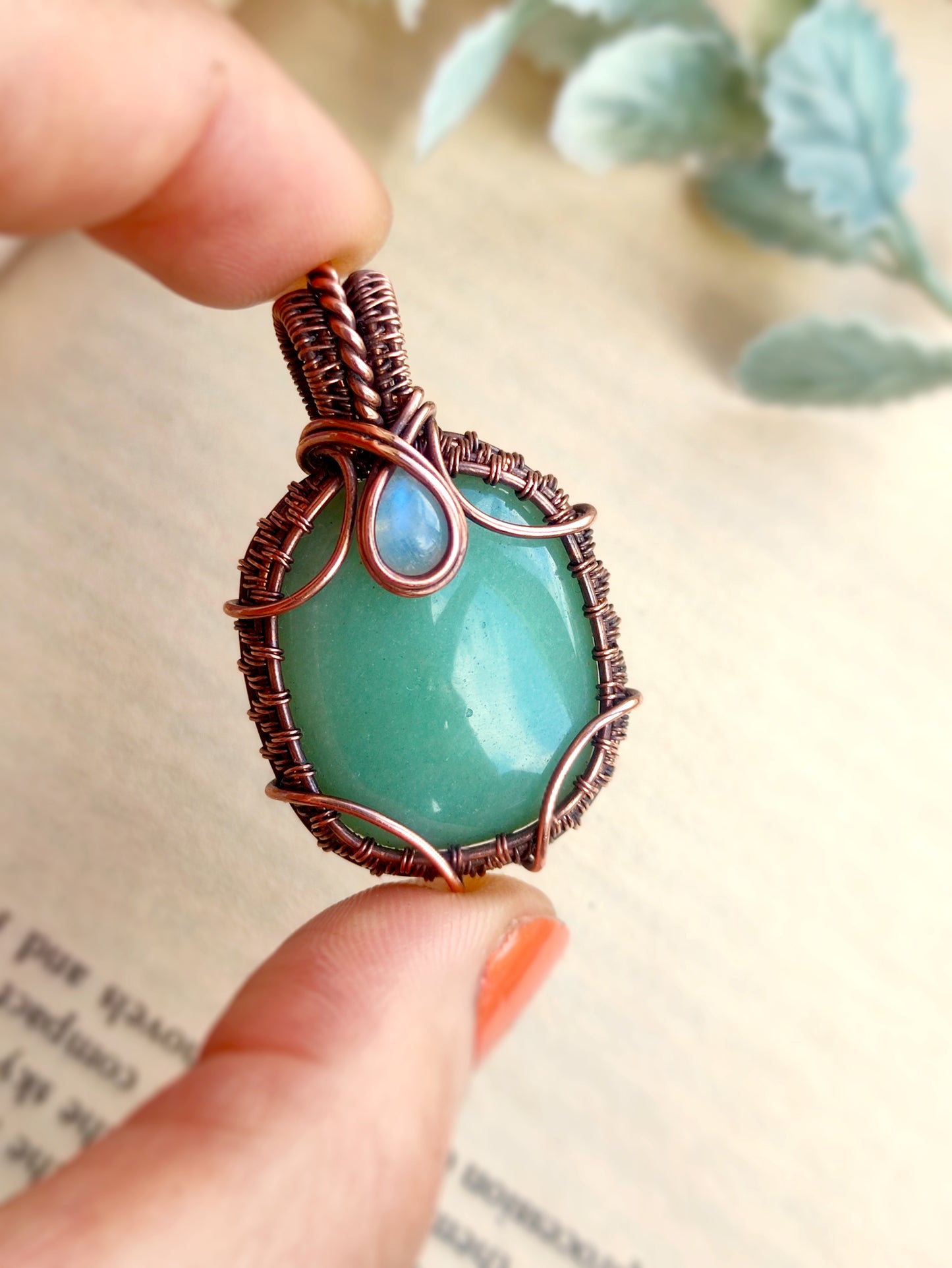 Green Aventurine and Moonstone Square Pendant in Wire Wrapped Copper FAQs