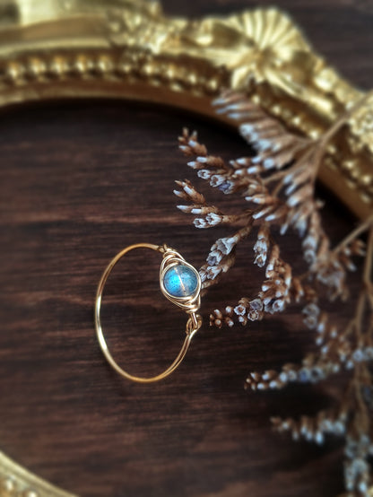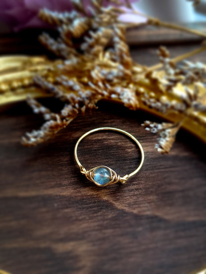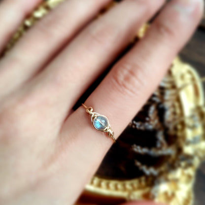 • Handmade in your ring size with a natural labradorite bead and 14K gold-filled, Rose gold filled or Sterling Silver wire