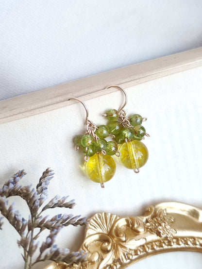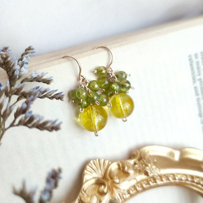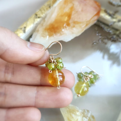 Peridot and Amber Cluster Earrings 14K Gold Filled