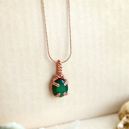 Small Green Onyx Pendant Necklace with Twisted Bail in Solid Copper FAQs