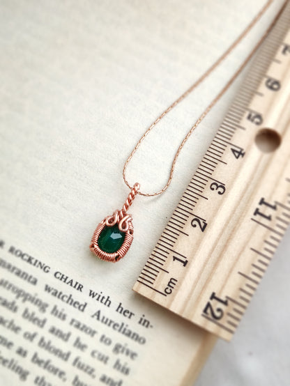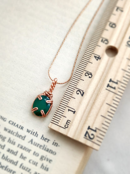 • This dainty pendant is handmade with natural green onyx gemstone and solid copper wire.