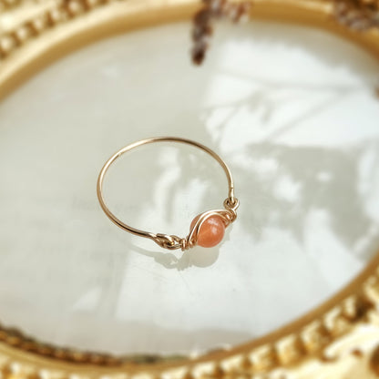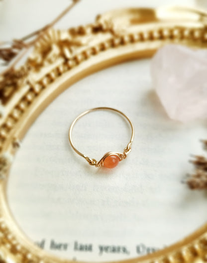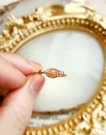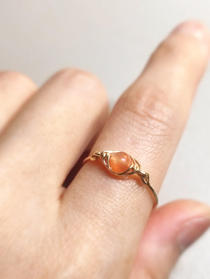 • Handmade in your ring size with natural sunstone bead and 14K gold-filled or Sterling Silver wire