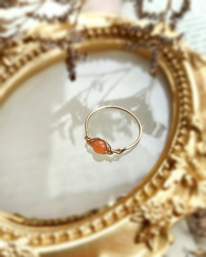 Dainty Sunstone Eye Ring 🧡 14K Gold - Rose Gold Filled - Sterling Silver Wire Wrapped Stacking Ring