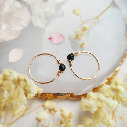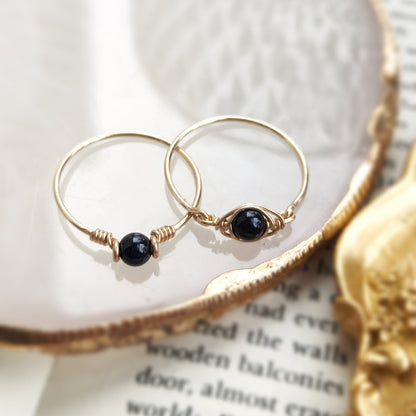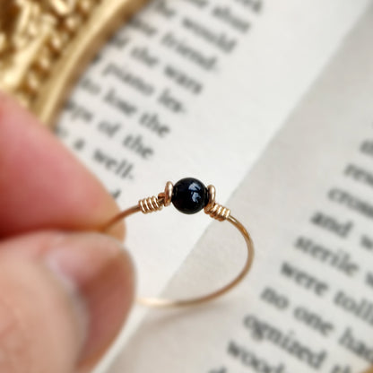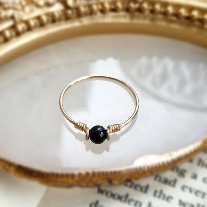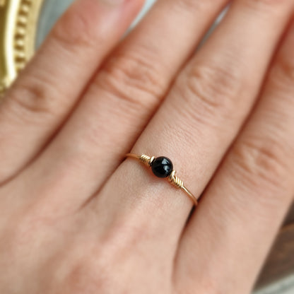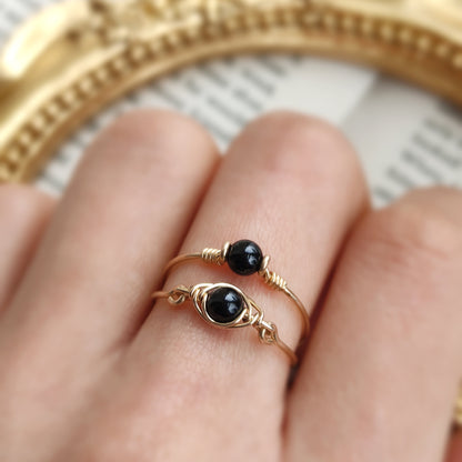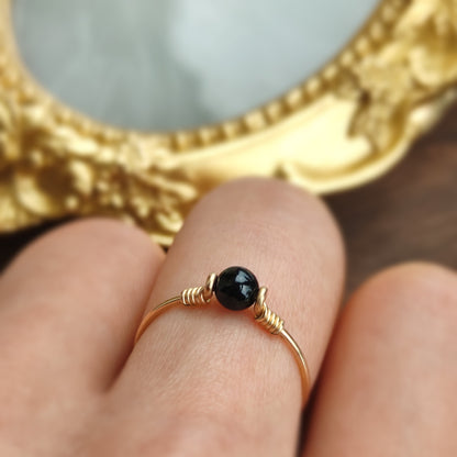 A dainty ring featuring a single 4mm black tourmaline bead, wire-wrapped on a slim 0.8 mm band. Known for its grounding and protective energy, black tourmaline is often worn as a shield against negativity — making this piece both beautiful and meaningful.
