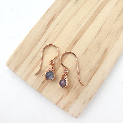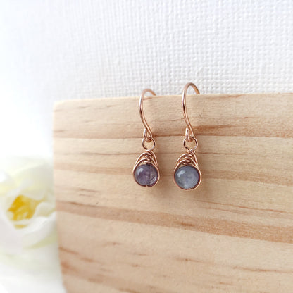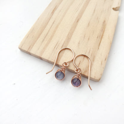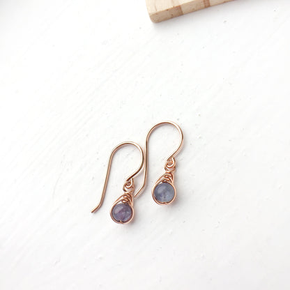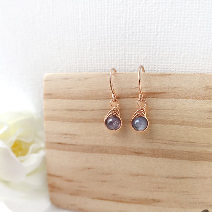 💜 Tiny Purple Tanzanite dangle earrings with 4mm genuine Tanzanite beads and 14K gold-filled or Sterling Silver wire.