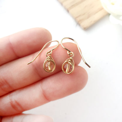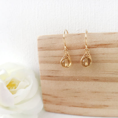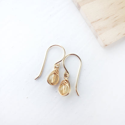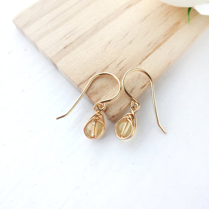 💛 Tiny Citrine dangle earrings with 4mm genuine Citrine beads and 14K gold-filled or Sterling Silver wire.