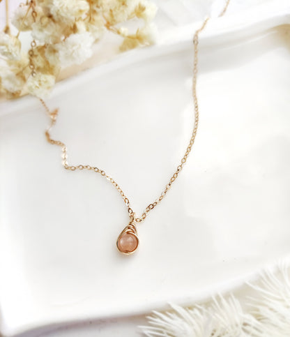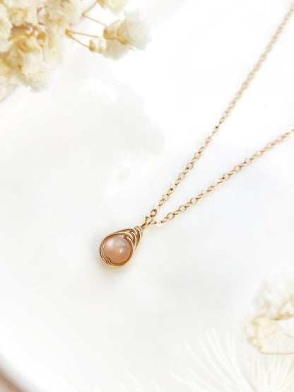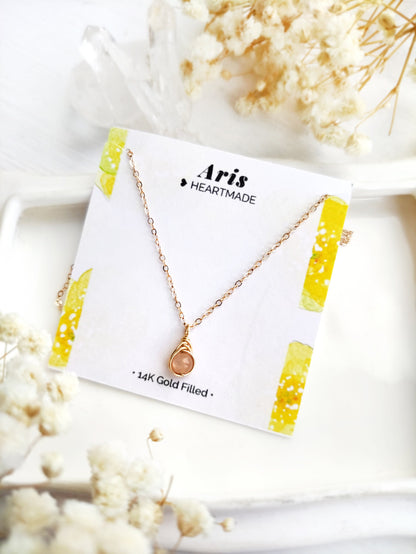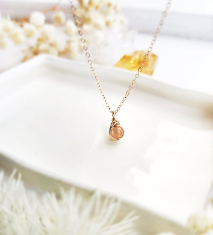 🌞 Delicate & Dainty Sunstone Necklace with 4mm Natural Sunstone and 14K Gold-filled, Rose Gold-filled, or Sterling Silver.