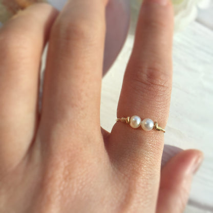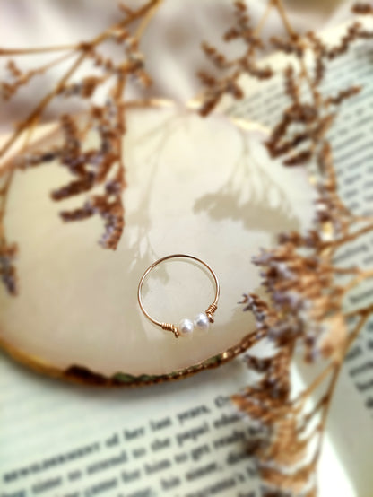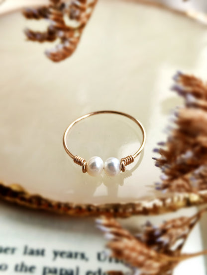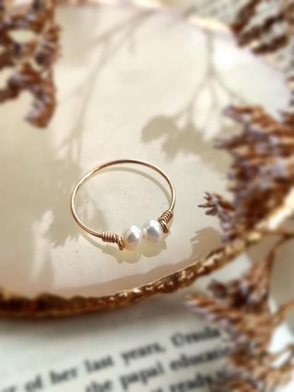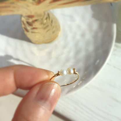 Stacklable Two Pearl Ring with 14K Gold Filled or Sterling Silver wire, June Birthstone Gift