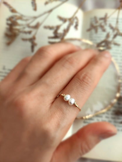 Double Pearl Ring, Dainty Two Freshwater Pearl Ring