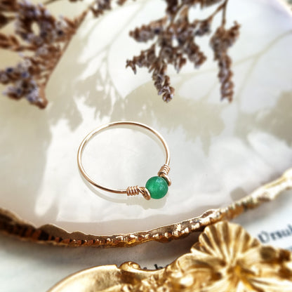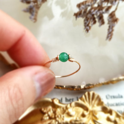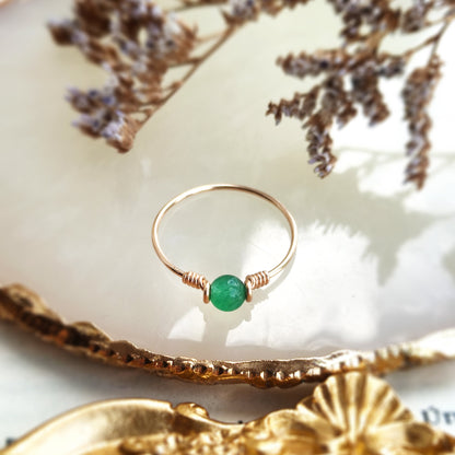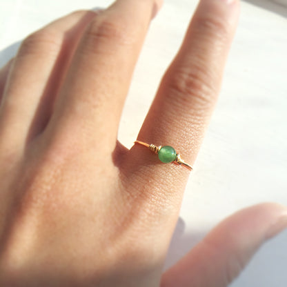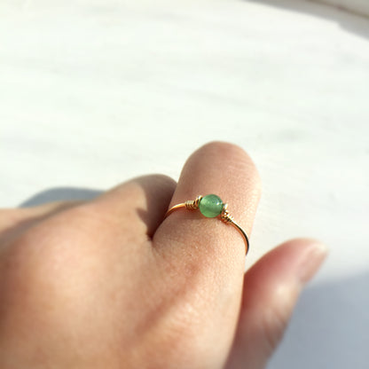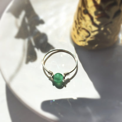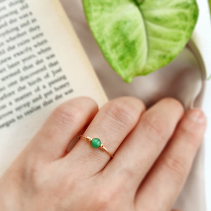 A simple, elegant ring featuring a 4mm natural green jade bead.