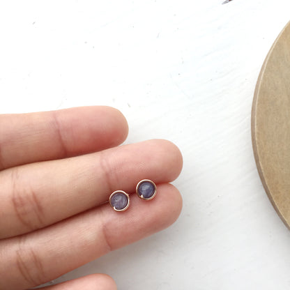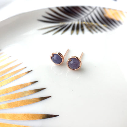 💜 December Birthstone Tanzanite 14K Gold Filled Wire Wrapped Stud Earrings (4mm) 💜