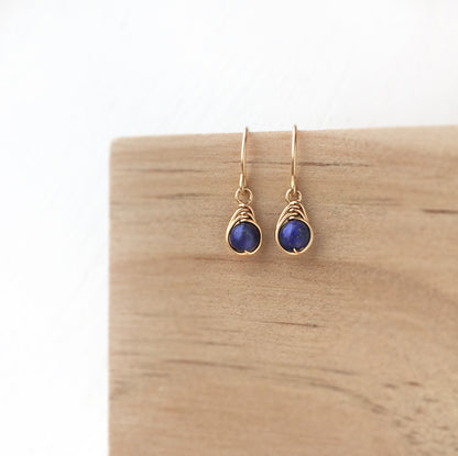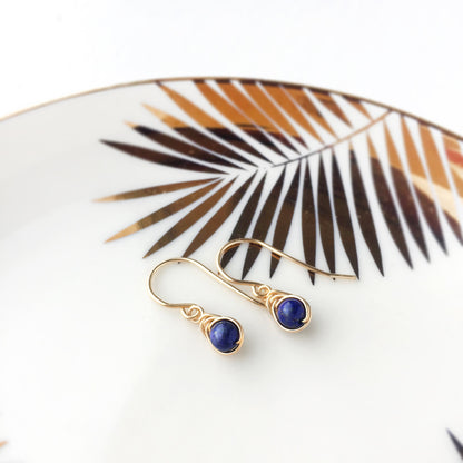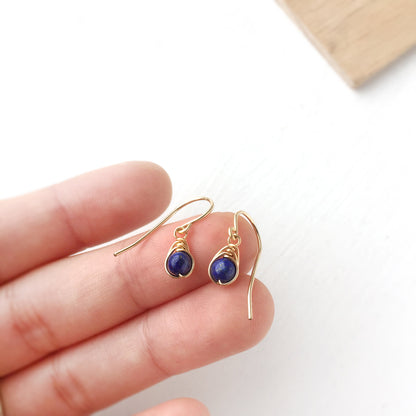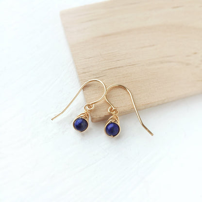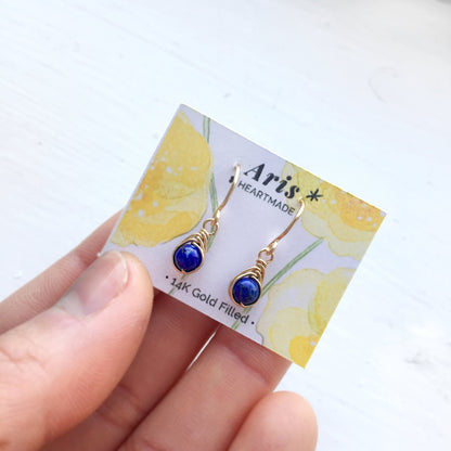 💙 Tiny Lapis Lazuli dangle earrings with 4mm genuine Lapis Lazuli beads and 14K gold-filled or Sterling Silver wire.