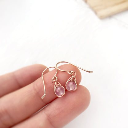 💜 Tiny Lavender Amethyst dangle earrings with 4mm genuine Lavender Amethyst beads and 14K gold-filled or Sterling Silver wire.